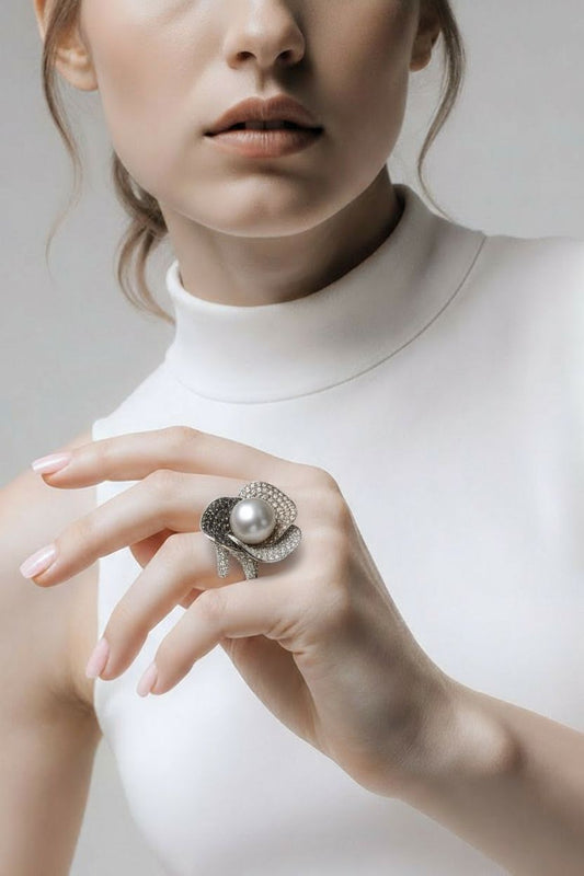 18kt white gold diamond and pearl ring