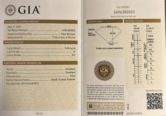 Кольцо с бриллиантом 0.60ct GIA