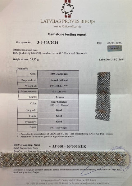 Сертификат Латвийской пробной инспекции на бриллианты