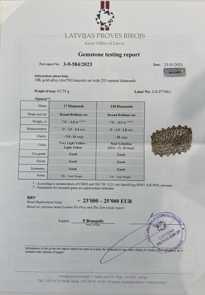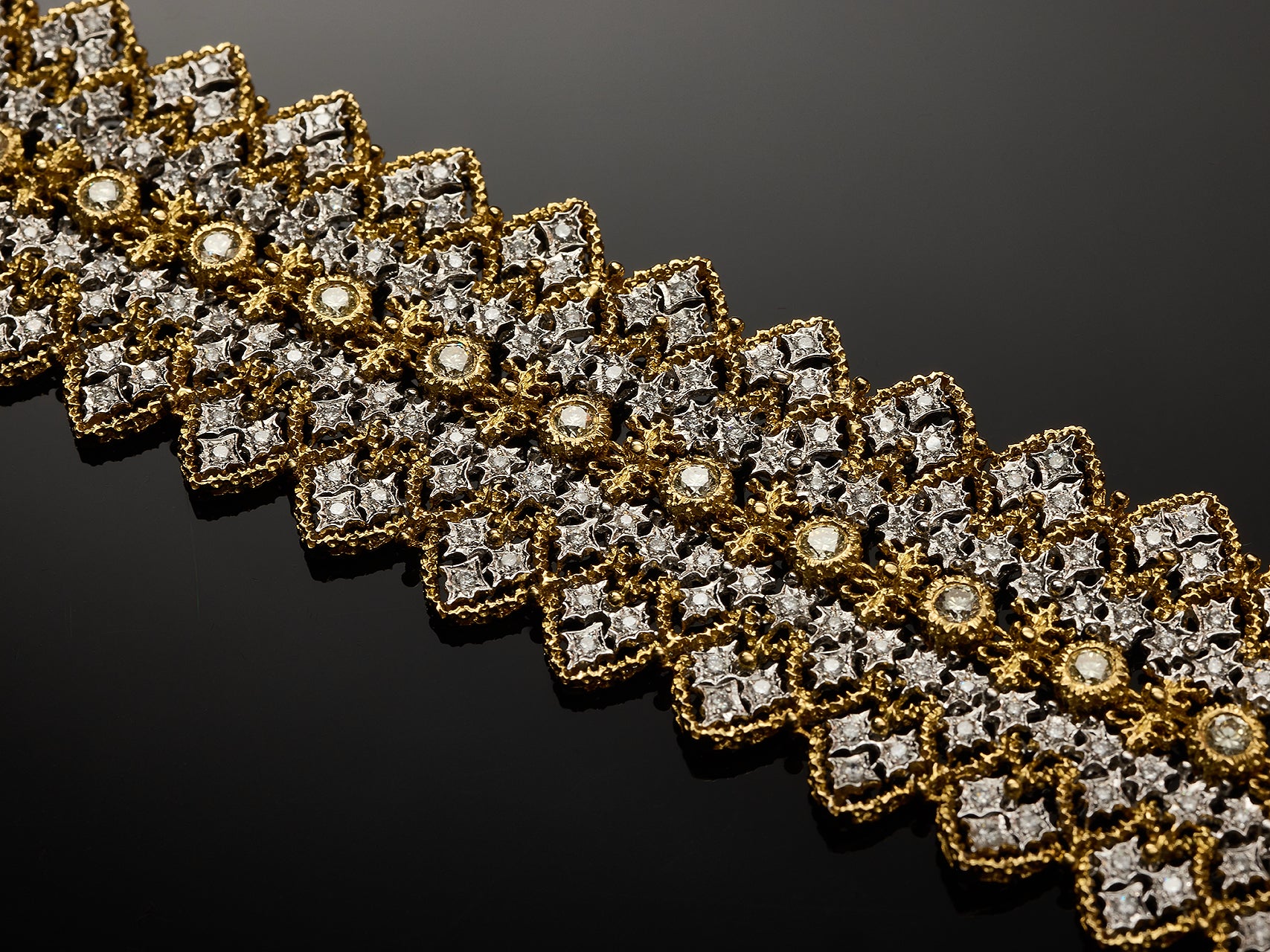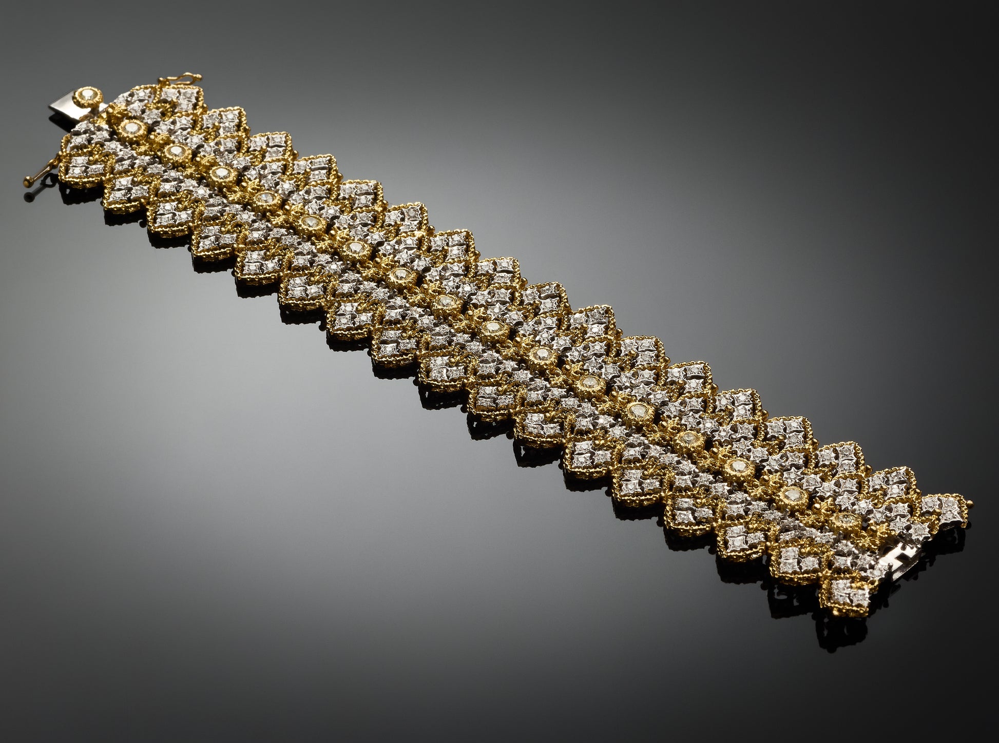 Белое/жёлтое золото, проба 750, вес 67.79г, 17 жёлтых бриллиантов 2.50ct, 238 белых бриллиантов 4.50ct