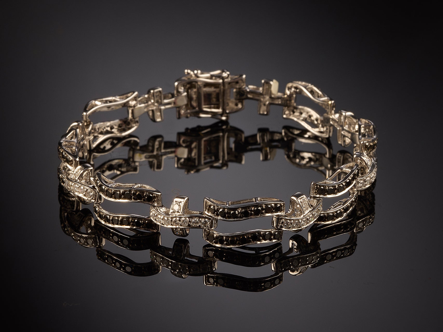 Белое золото, проба 750, вес 16.92г, 112 чёрных бриллиантов 3.36ct, 72 белых бриллианта 1.20ct