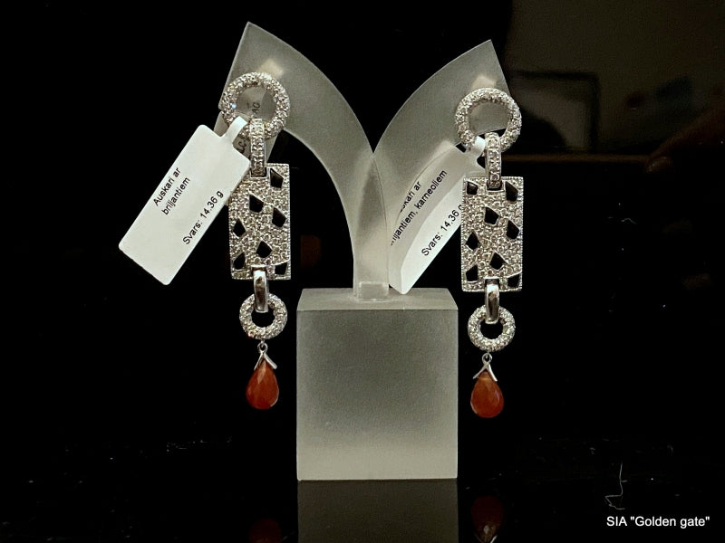 Серьги с бриллиантами, ониксом и халцедоном