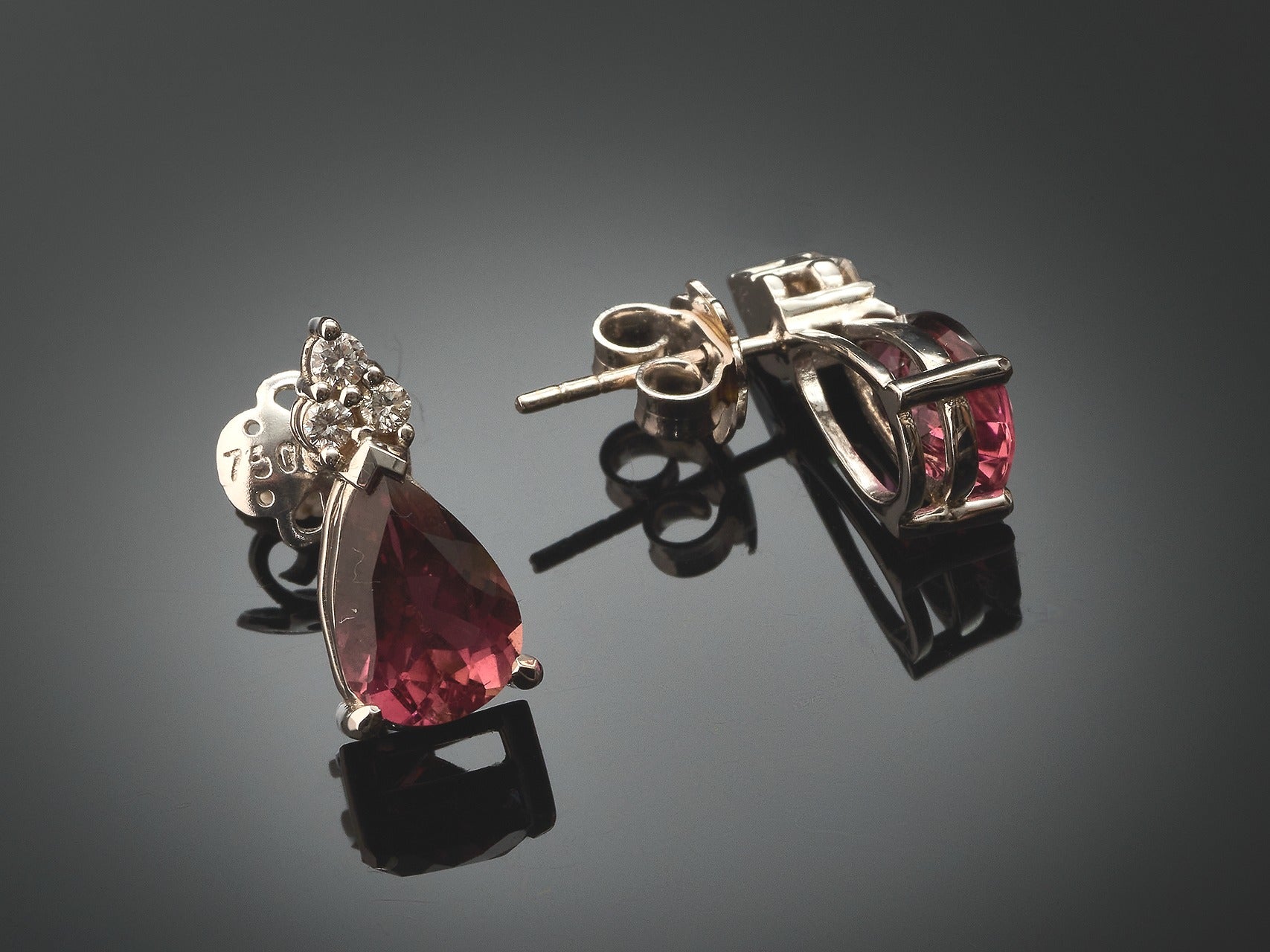 Белое золото, проба 750, вес 4.32г, 6 бриллиантов 0.20ct, 2 турмалина 3.23ct