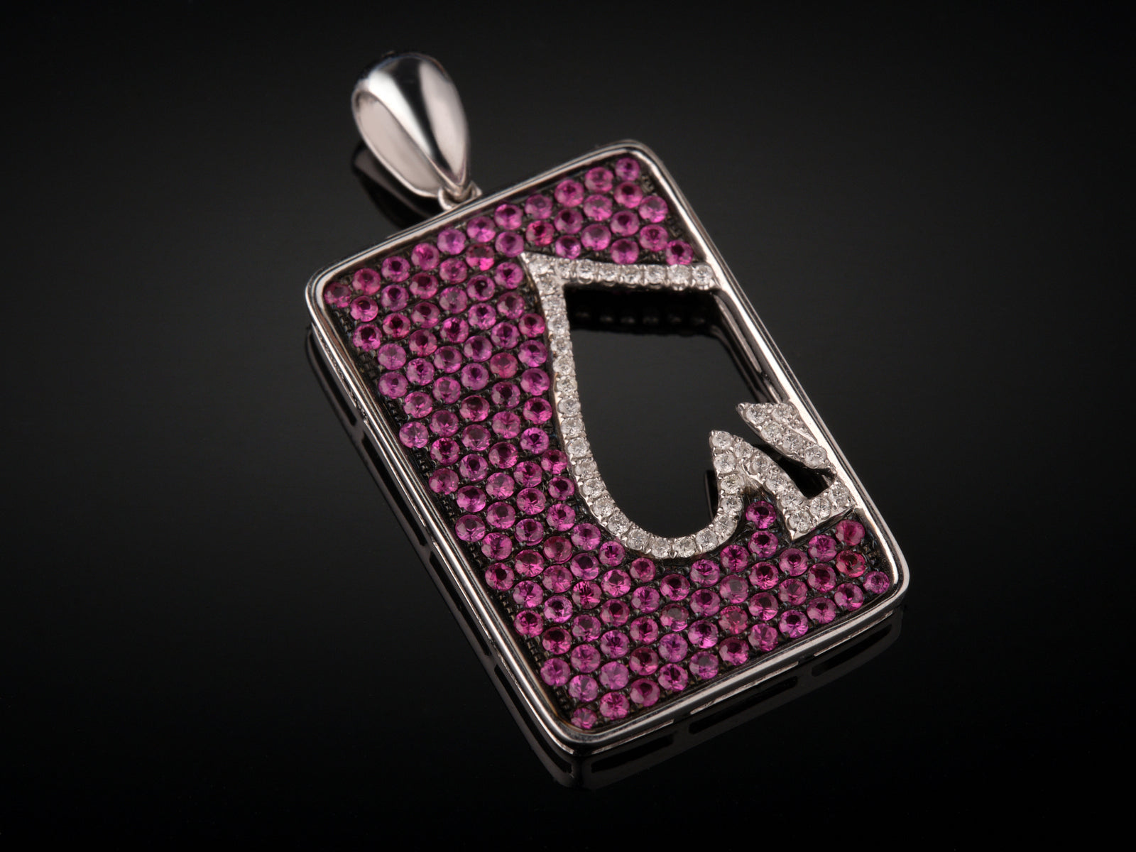 Белое золото, проба 750, вес 6.42гр, бриллианты 0.21ct, рубины 1.96ct