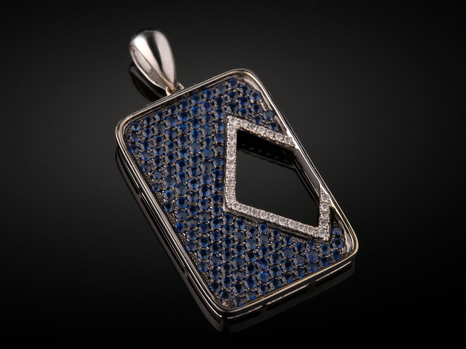Белое золото, проба 750, вес 6.21гр., бриллианты 0.14ct, сапфиры 2.17ct