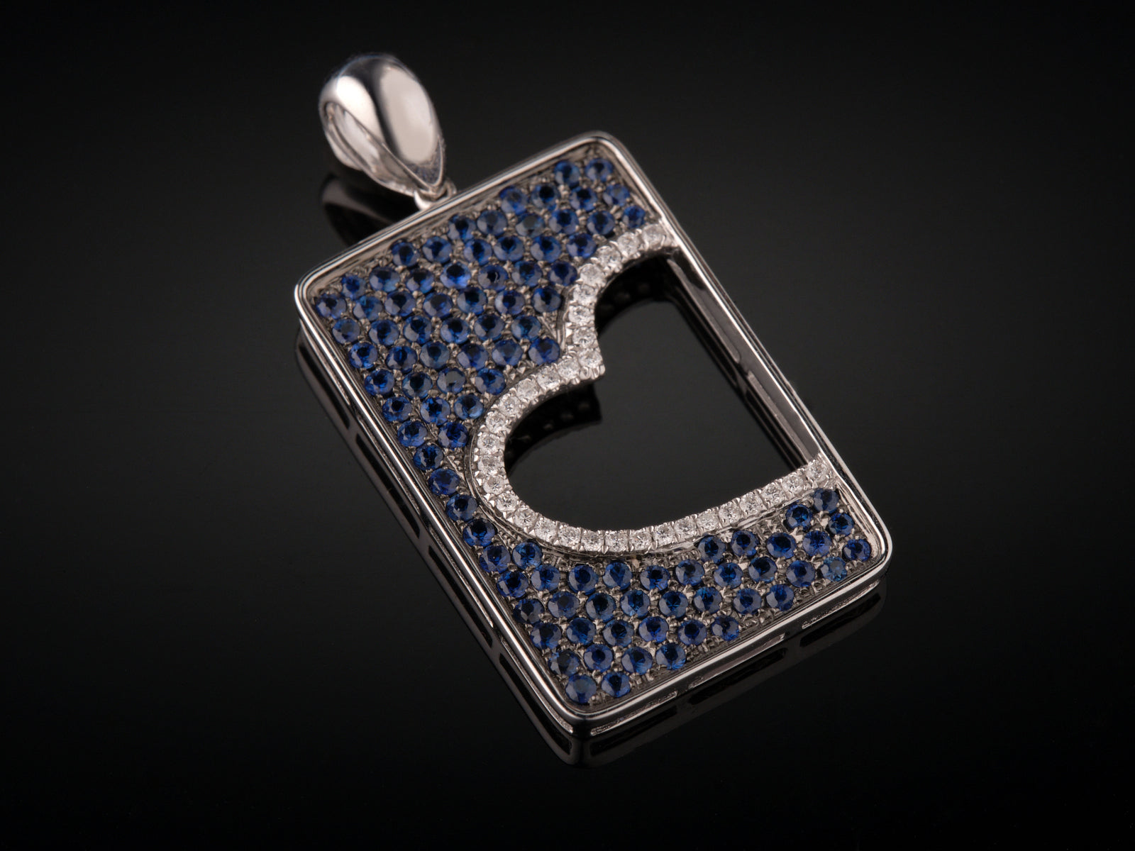 Белое золото, проба 750, вес 5.17гр., бриллианты 0.18ct, сапфиры 1.64ct